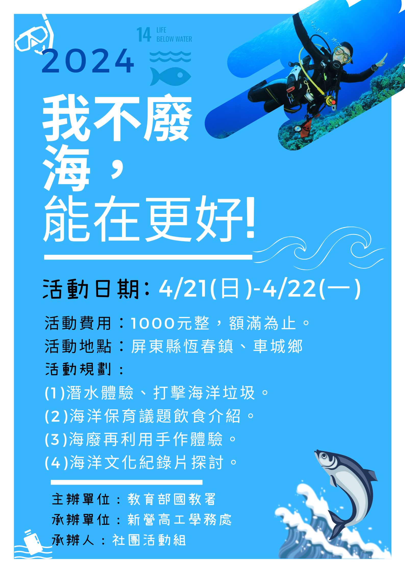 2024 | 大手牽小手-我國高中生與大專院校外籍生交流計畫我不廢! 海,能在更好: