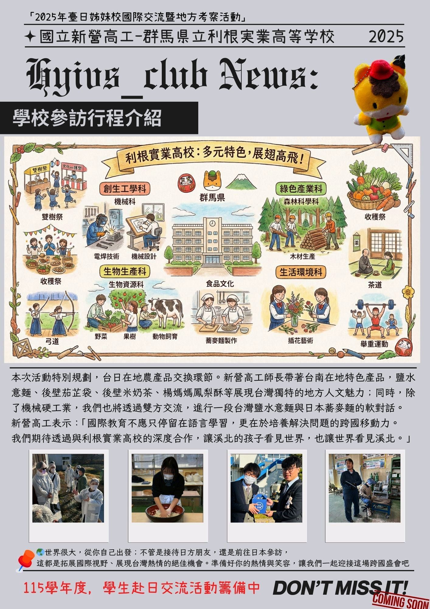 國立新營高工-群馬県立利根実業高等学校「2025年臺日姊妹校國際交流暨地方考察活動」
